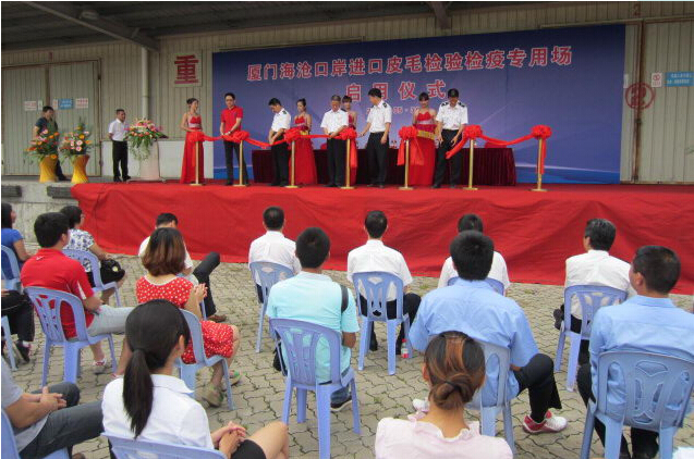 廈門(mén)海滄保稅港區的進(jìn)口皮毛檢驗檢疫專(zhuān)用場(chǎng)于6月在路橋國貿公司海滄保稅物流中心正式啟用,這也是福建省首個(gè)專(zhuān)門(mén)用于進(jìn)口皮毛檢驗檢疫的查驗場(chǎng)。廈門(mén)出入境檢驗檢疫局海滄分局、職能管理處等相關(guān)領(lǐng)導、路橋國貿公司副總經(jīng)理陳惠平及保稅物流中心全體員工參加了此次啟用慶典。